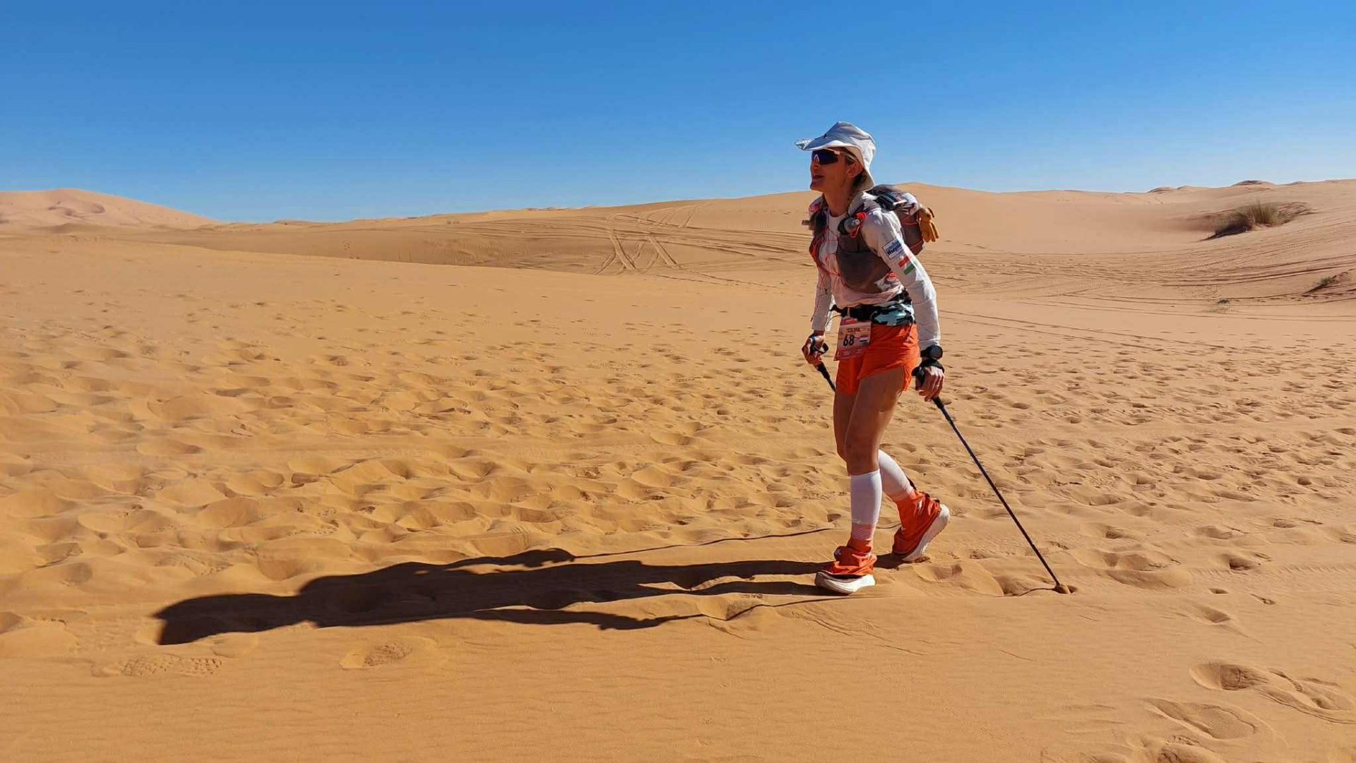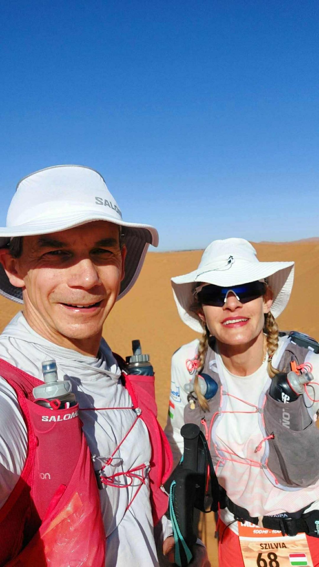 A haladást természetesen a megfelelő zsák- és cipőválasztás mellett a futóbotok is segítették, bár Szilvi elmondása szerint az elején azt hitték, felesleges teher lesz csak a zsákban, de a 100. kilométer után viszont nagyon sokat segítettek. „A lábunk nagyon komoly terhelést kap a homoktól, és attól kezdve, hogy elővettük a botokat, hatalmas terhet vettek le az alsótestről. A verseny után sokkal erősebb izomlázam lett a felsőtestben, tehát maximálisan jó döntés volt vinni.”