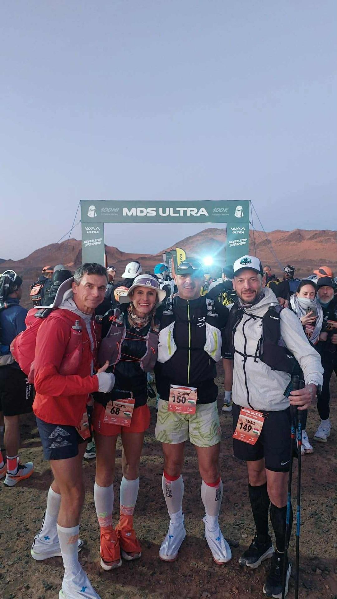 A sivatag még a legrutinosabb futóknak is tud tehát meglepetést okozni, hiszen a sötétség, a hideg és a magányos órák mellett más kellemetlenségekkel is szembesülhetnek a versenyzők. A versenyen Szilvi és Gyuri mellett két magyar futó állt még rajthoz: Veres Szilárd a 100 mérföldes, Meretei Balázs a 100 kilométeres távon indultak. Balázsnak az éjszaka közepén helyi őslakos gyerekekkel gyűlt meg a baja, akik elkezdték lökdösni a futót, Gyurinak a tevék okoztak izgalmas perceket, Szilvinek pedig az asztmájával kellett megküzdenie a homokban, így mindenkinek megvoltak a maga kis harcai a szaharai éjszakában.