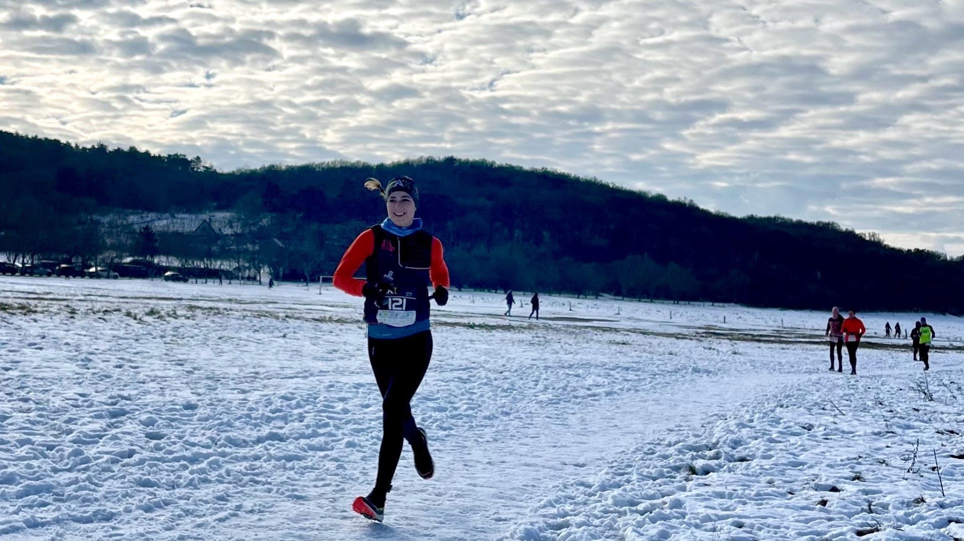 Rengeteg lépcsős rész volt, felfelé égett a combom, de azt az érzést már megszoktam, a csúszós lejtőket viszont szívesen elcseréltem volna. Az egész futam alatt közel futottunk egymáshoz, így végig megvolt a versenyhangulat, szeretem az ilyet, ezúton is köszönöm neki, egyedül biztosan nem nyomtam volna ennyire. Próbáltam haladni, ahogy tudtam, nekem ebben a havas időben ez volt a maximum, amit be mertem vállalni.
